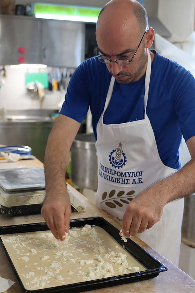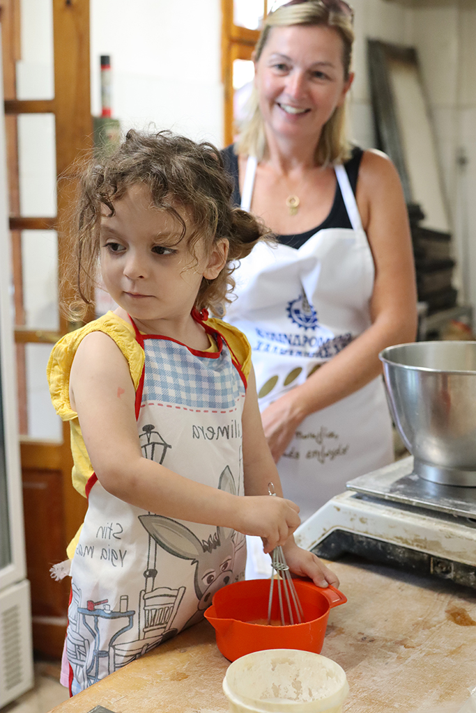 Wir starteten unseren Backkurs mit einer Alevropita – einem „Feta-Käse-Pie“. Tatkräftig unterstützt wurden wir dabei von der 4-jährigen Tochter von Kosta. Bei ihr merkt man schnell, dass sie in und mit der Bäckerei aufwächst.