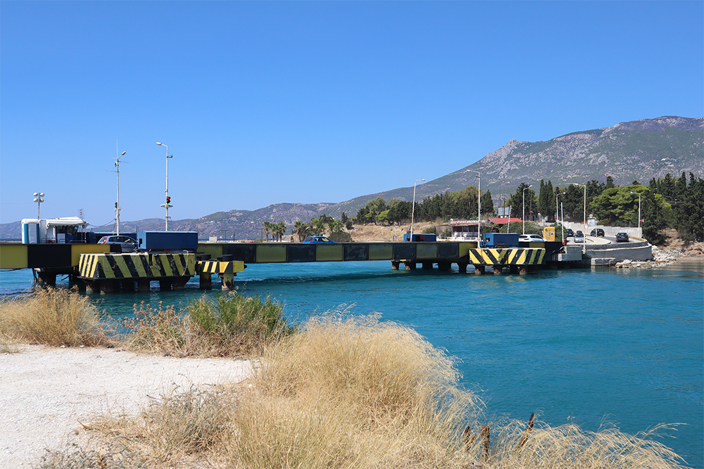 Und wenn wir schon bei Brücken sind. Auf unserer Fahrt nach Megala haben wir auch den Kanal von Korinth überquert. Aber nicht ohne uns davor die dortige Einfahrtsbrücke anzusehen. Diese ist nämlich auch eine Besonderheit. Je nach Bedarf wird diese Brücke im Meer versenkt, um den Schiffen die Einfahrt in den Kanal von Korinth zu ermöglichen.