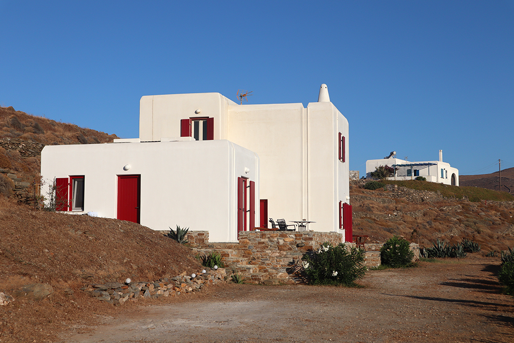 Wir hatten bei der Quartierauswahl auf jeden Fall wieder Riesenglück. Ein kleines Haus, neu im kykladischen Stil errichtet, mit fantastischem Blick auf die kleinen Buchten vor Loutra, sollte unsere Herberge für die nächsten Tage sein. Und wir hätten es nicht besser erwischen können. Freundlich wurden wir von Hausherrin Katarina empfangen und wir fühlten uns sofort sehr gut aufgehoben.