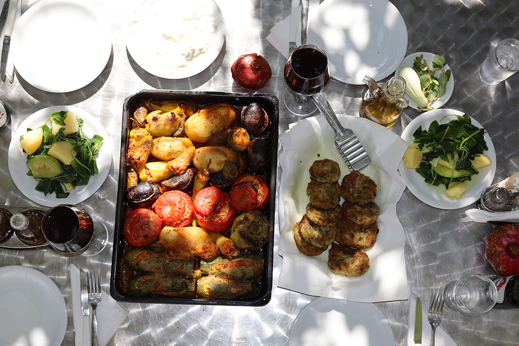 Wie sich herausstellte waren wir in Krousonas Village gelandet, in der traditionellen Taverne Baxes. Und hier kann man nicht nur gut essen, sondern es werden auch Kochkurse angeboten. Die Zutaten stammen dabei von der eigenen Farm.