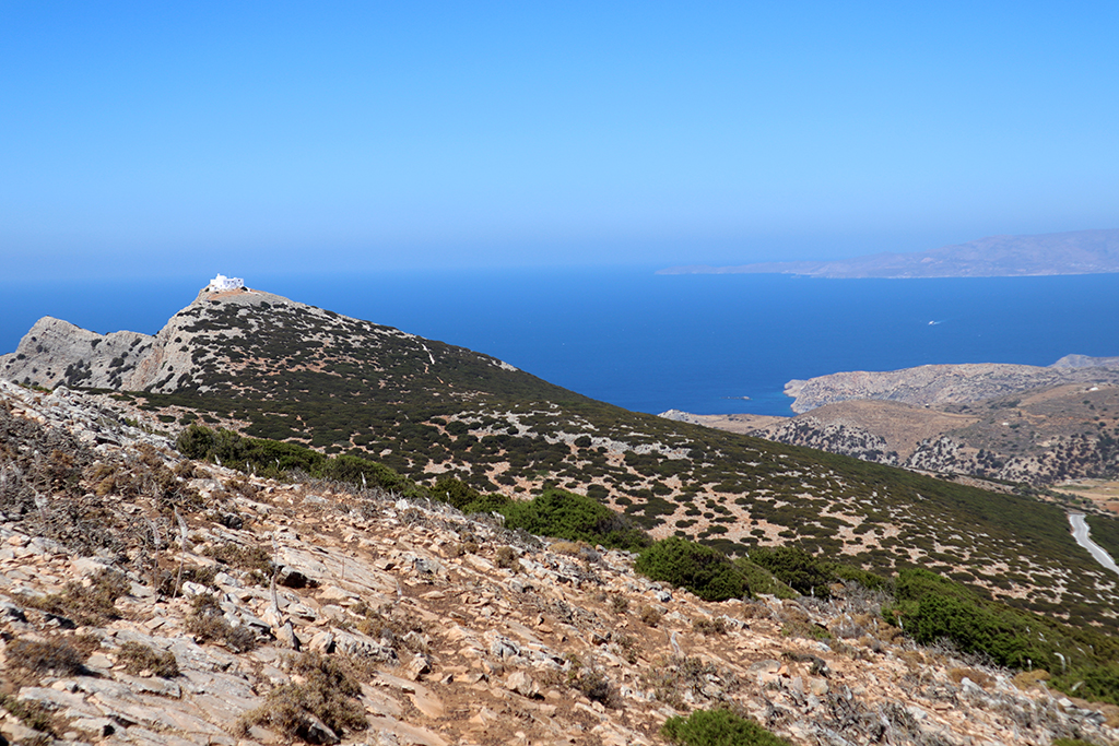 Aber nicht nur unseren Hochzeitstag feierten wir hier, sondern auch meinen „runden“ Geburtstag durfte ich hier genießen! Um 7.00 Uhr Früh ging’s gleich los zu einer 2,5 stündigen Wanderung zum Kloster Profitis Ilias auf dem höchsten Punkt der Insel (695m). Dort bekamen wir als Belohnung für die morgendliche Anstrengung einen wunderbaren Blick über die gesamte Insel und auch zu den Nachbarinseln. Und auch wenn ich mich wiederhole: es war traumhaft schön! In Apollonia gab es dann zur Stärkung ein Sektfrühstück!