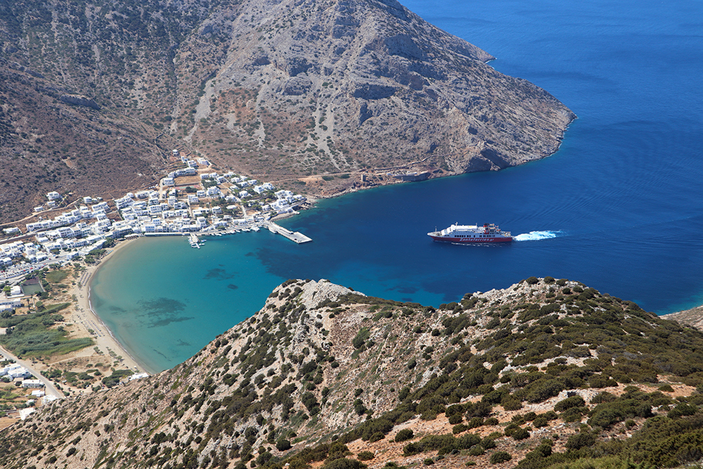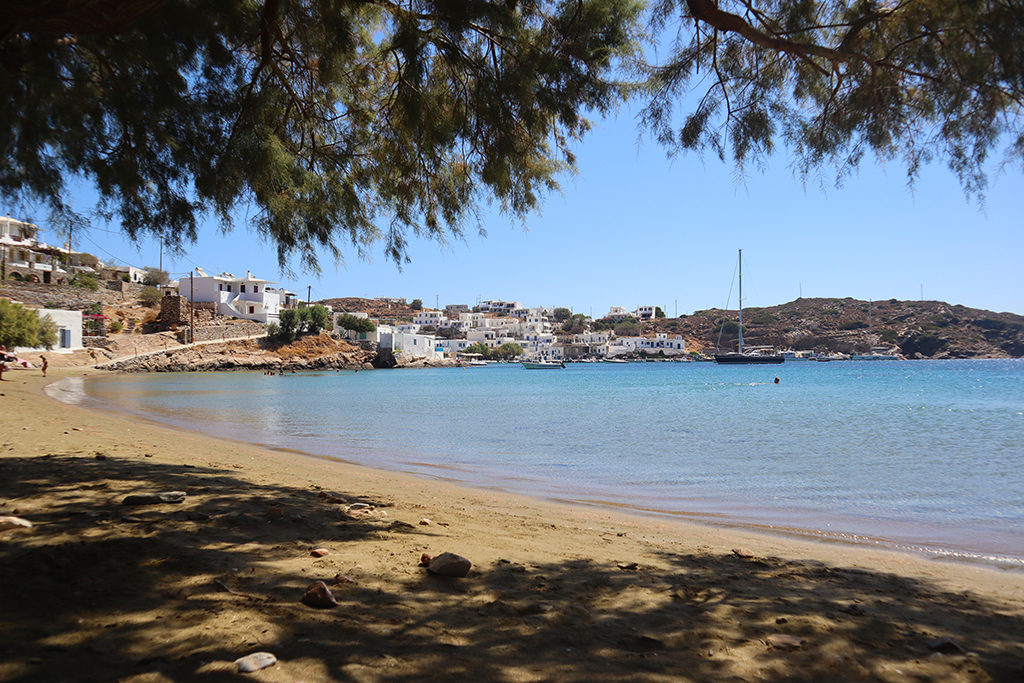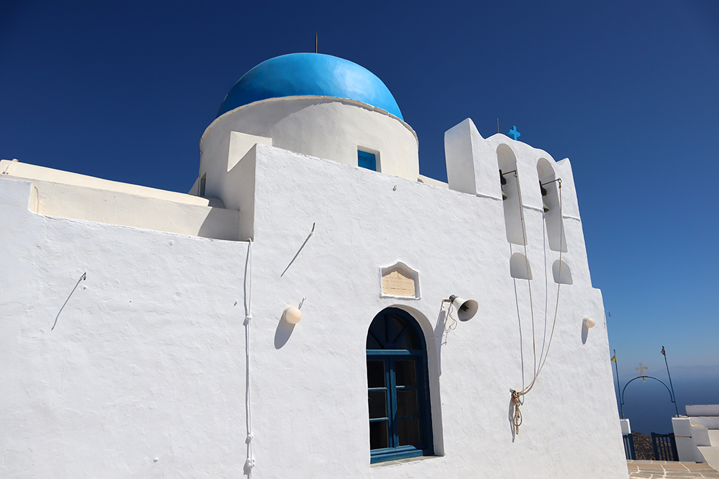 Das wunderschöne Dorf Kastro liegt im östlichen Teil der Insel und wurde auf einem steilen Felsen erbaut. Hier fühlt man sich als wäre die Zeit stehen geblieben. Traumhaft schön sind die kleinen Gassen, die weißen ineinander verschachtelten Kykladenhäuschen. Mit ihren blauen, grünen oder gelben Balkonen, Fenstern- und Türläden sind sie einfach ein Hingucker. Die kleine Kirche der „Sieben Märtyrer“ liegt hier auf einer kleinen Felsnase. Sie ist ebenfalls eine sehr bekannte Sehenswürdigkeit der Insel.