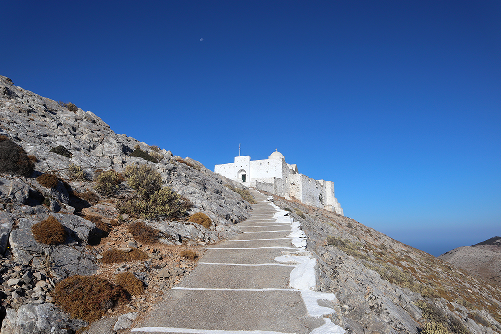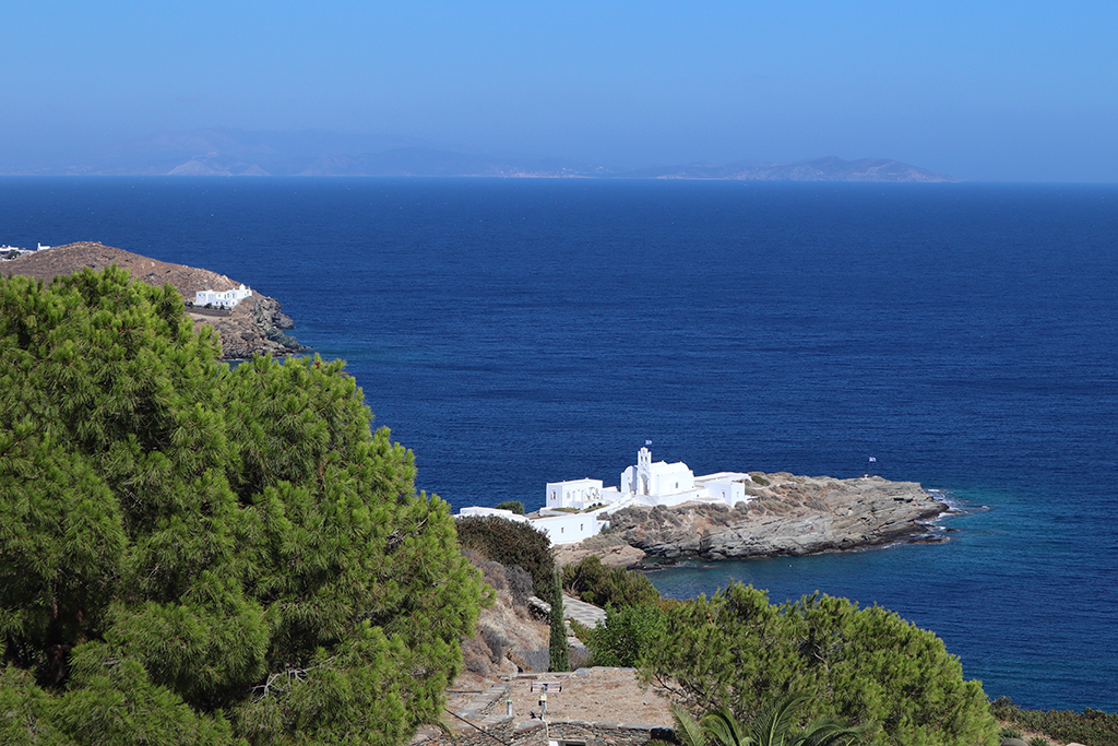 Dann ging’s weiter nach Vathi, Platis Gialos, Richtung Chrysopigi. Hier steht eines der bekanntesten Fotomotive von Sifnos. Das Kloster Chrysopigi. Es liegt sehr markant auf einer Felshalbinsel.